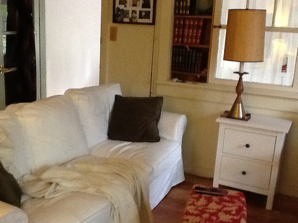 But, I feel there is too much furniture. I hate feeling crowded. Our front room is also our dining room and where the TV is. So what should I do. The table needs to stay. I have a Heywood wakefield hutch for my pine cone ware. That stays.