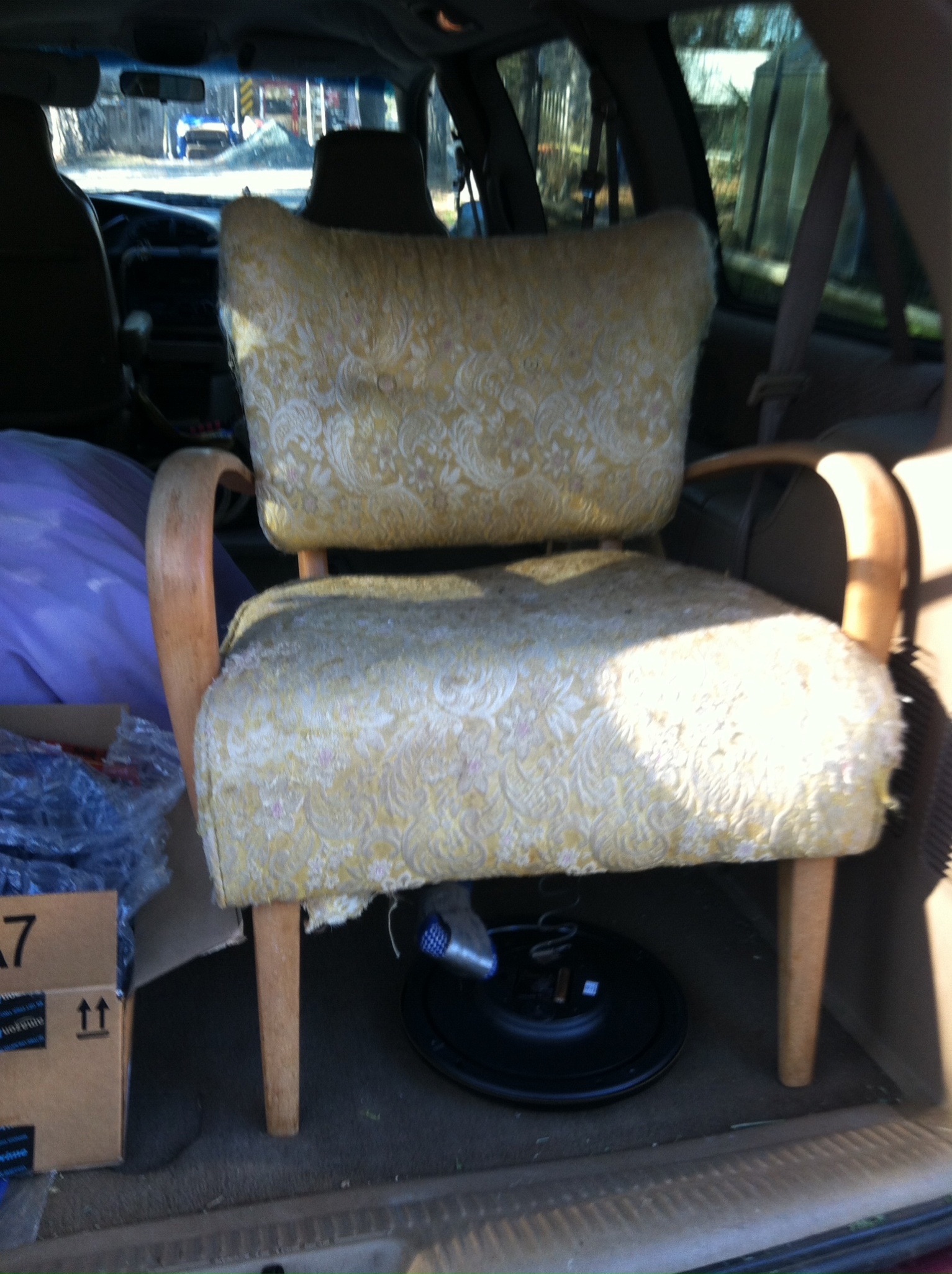 So when we bought the double wishbone table and chairs the people had 2 arm chairs they threw in for free(not really free) since we probably overpaid on the table and chairs. But they needed reupholstering . Of course, i just knew “someday” I’d get it done. Well, the time has come to realize ,Im not going to get it done. It would just be too expensive to do 2 chairs. So, I’m finally doing it, and giving them to Habitat for Humanity. Some lucky person can reupholster them. They are a deal if you know what to do, which I do not.