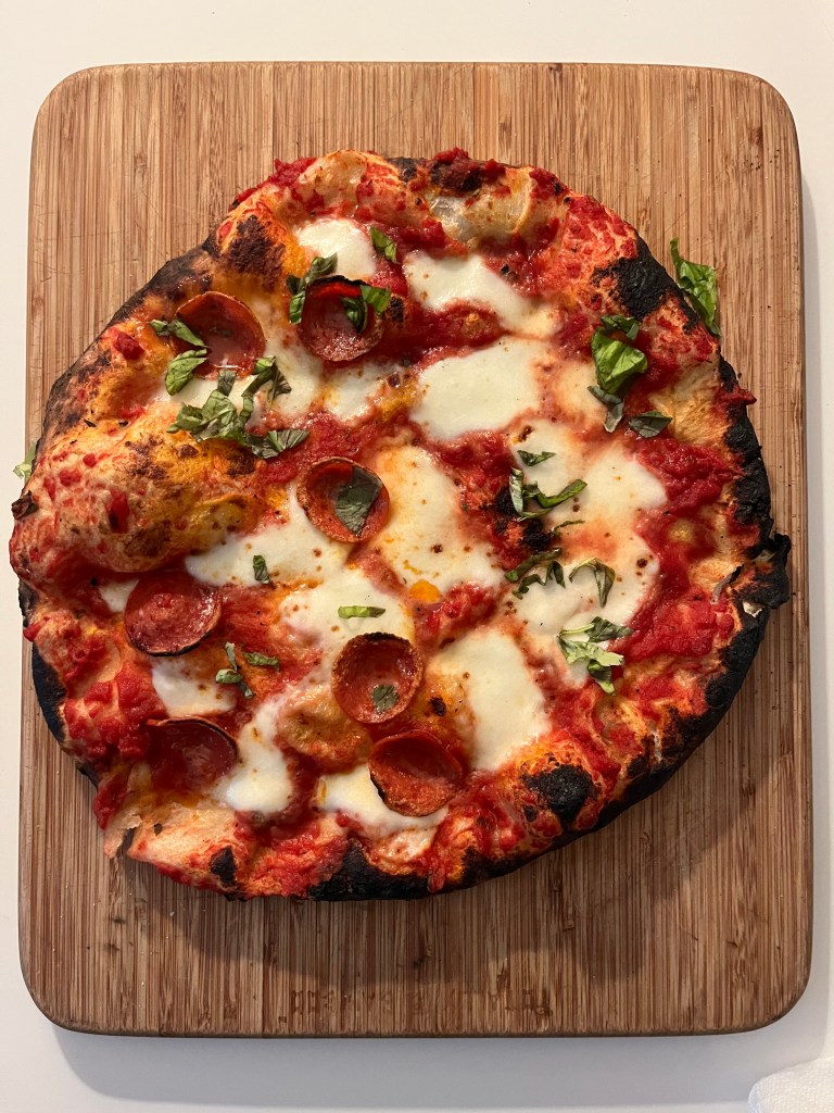 Here’s an updated pizza picture, after the Ooni disaster. This one was perfect. As one person commented, Ooni is overly optimistic about the time it takes to heat up the oven to 900 degrees.