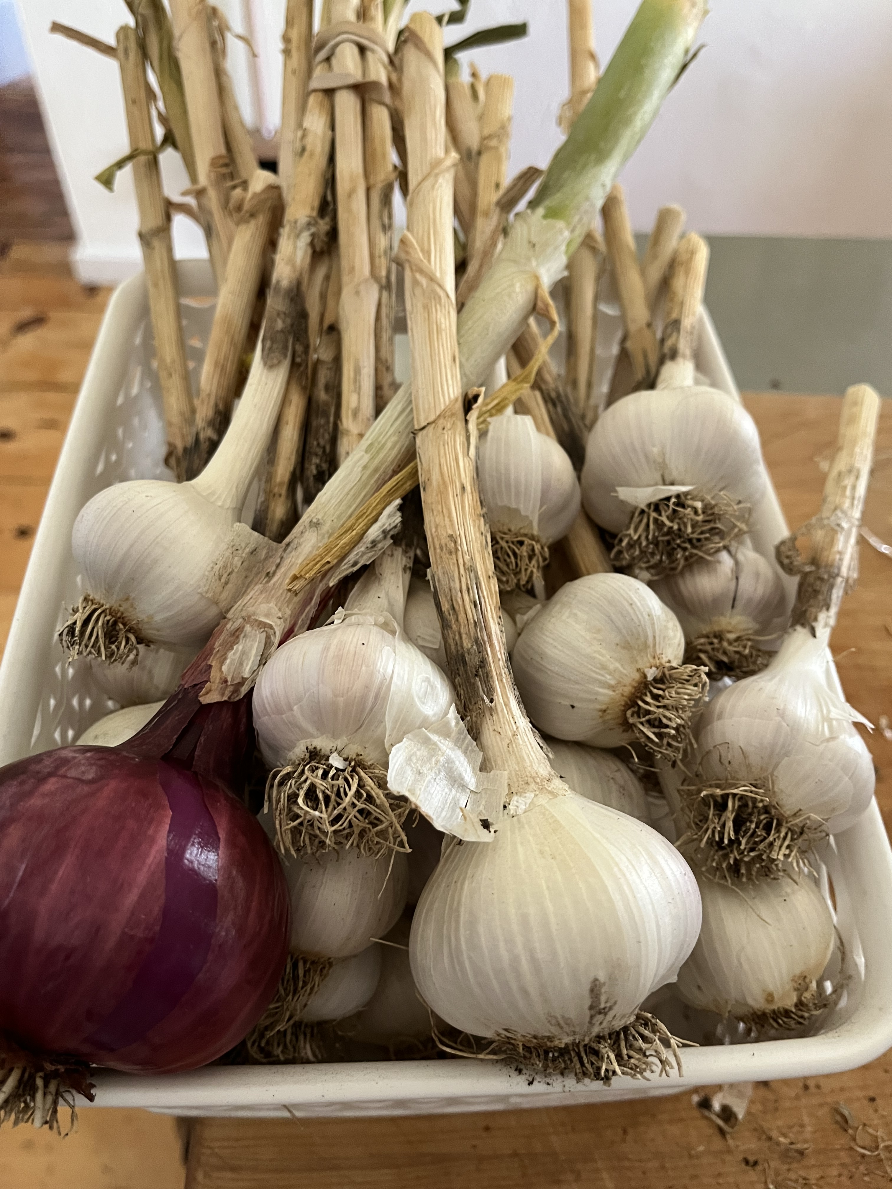 These were planted last about 6 months ago. A few bulbs are a really nice size. That’s one onion out of a few I’ve already used. I’m not sure how many onions will get with this second planting but I hope enough for a few months.