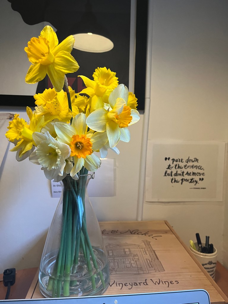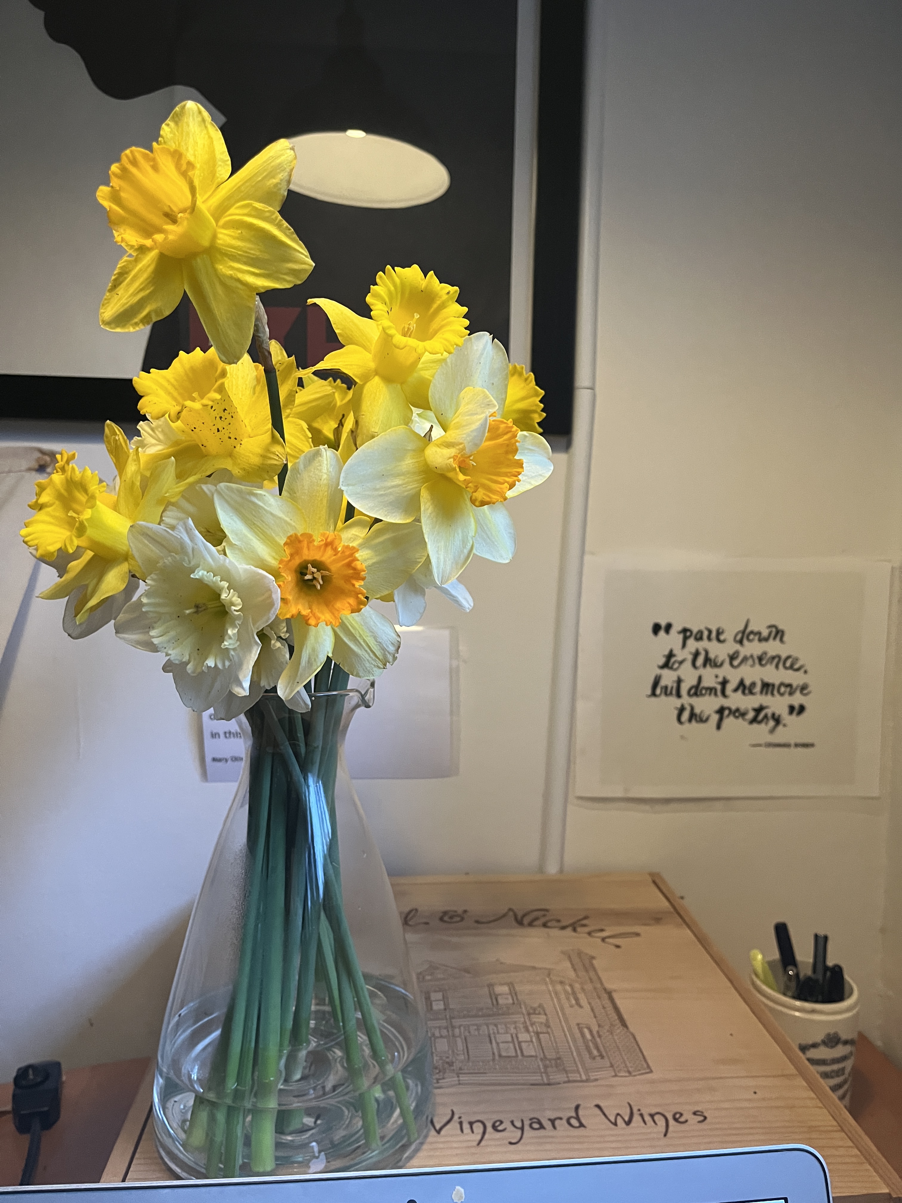 • Our bright yellow daffodils add lots of cheer to the yard and my table.