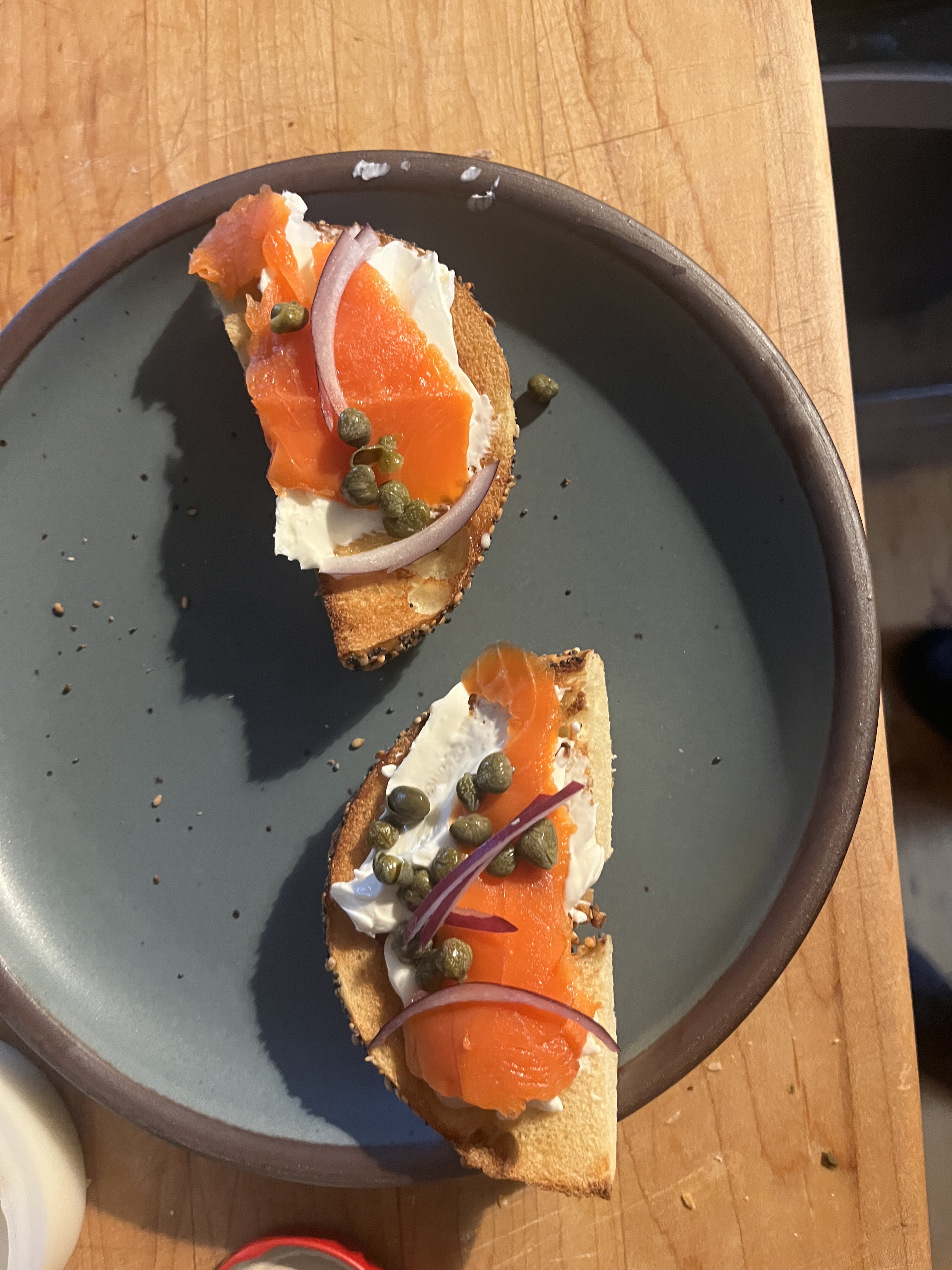 This was our Christmas morning bagels and lox. I didn’t get a picture of dinner, but everything turned out delicious.