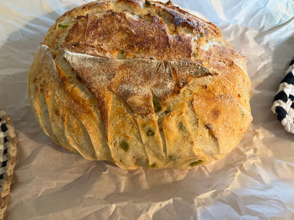 Here’s the jalapeno loaf. It looks good. I haven’t cut it yet, but I will slice it up this morning.