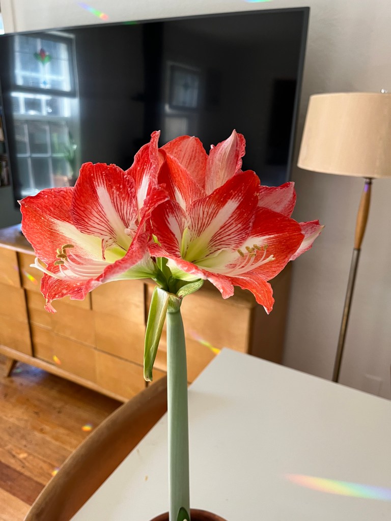 Here’s another amaryllis bulb blooming. This one is called Minerva.