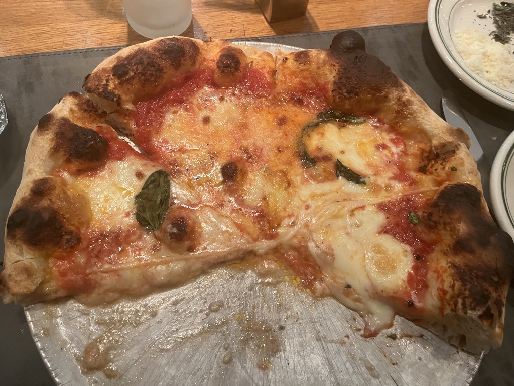 Then we decided to go to a pizza place, Delpino’s, in downtown which looked good and not far from the hotel. OK, one tells you that downtown Palo Alto is congested, has no parking, and is a nightmare to navigate. We circled 3 times looking for parking after we found the restaurant. So eventually we found a parking lot(city) about 4 blocks away. It was so weird that there were so many people. Maybe not for them since I’m assuming they (whoever lives there) do this routinely. Anyway, we got the the restaurant. They had some tables for 4 it looked like but the hostess said, the bar was the only place. I could have made a fuss because sitting on a bar stool is not easy for me with my back, but we said ok. The pizza was totally worth it though.